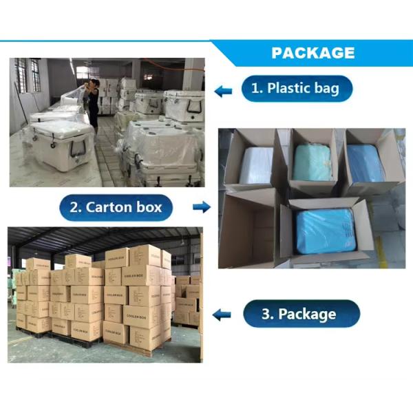 Heavy-duty roto-molded construction for durable outdoor use Thick, insulated design offers ice retention for up to 3 days, dry ice compatible Silicone Seal provides an airtight seal to keep contents cold and is removable for easy clean up Lid lock with an integrated hinge helps prevent accidental or unexpected lid closing Anti skid feet for smooth travel Materials are nontoxic, tasteless and approved for direct contact with food Drain Valve design with recessed drain plug ,which make the melted ice flow out easily.Built-in UV resistance helps prevent plastic breakdown and fading caused by sun exposureTie-down slats.